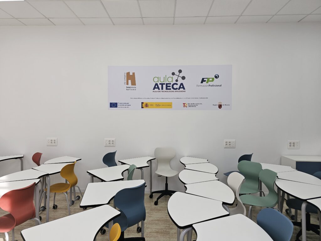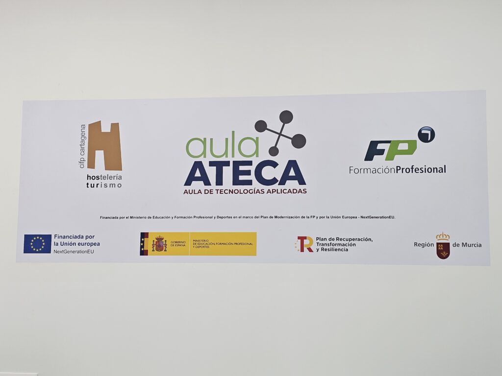 El Aula ATECA (Aula de Tecnología Aplicada) del CIFP de Hostelería y Turismo de Cartagena es un espacio de aprendizaje innovador en los centros de Formación Profesional, impulsado para modernizar la enseñanza con tecnologías punteras. Diseñada para simular entornos laborales reales, fomentar la digitalización, el aprendizaje activo, la robótica, la realidad virtual y el emprendimiento, conectando al alumnado con el mercado laboral.