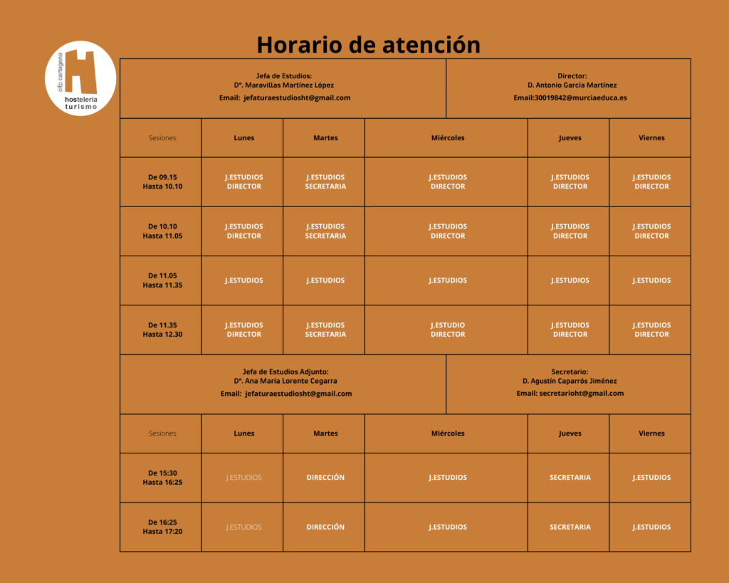 El Equipo Directivo del CIFP de Hostelería y Turismo de Cartagena está compuesto por:
